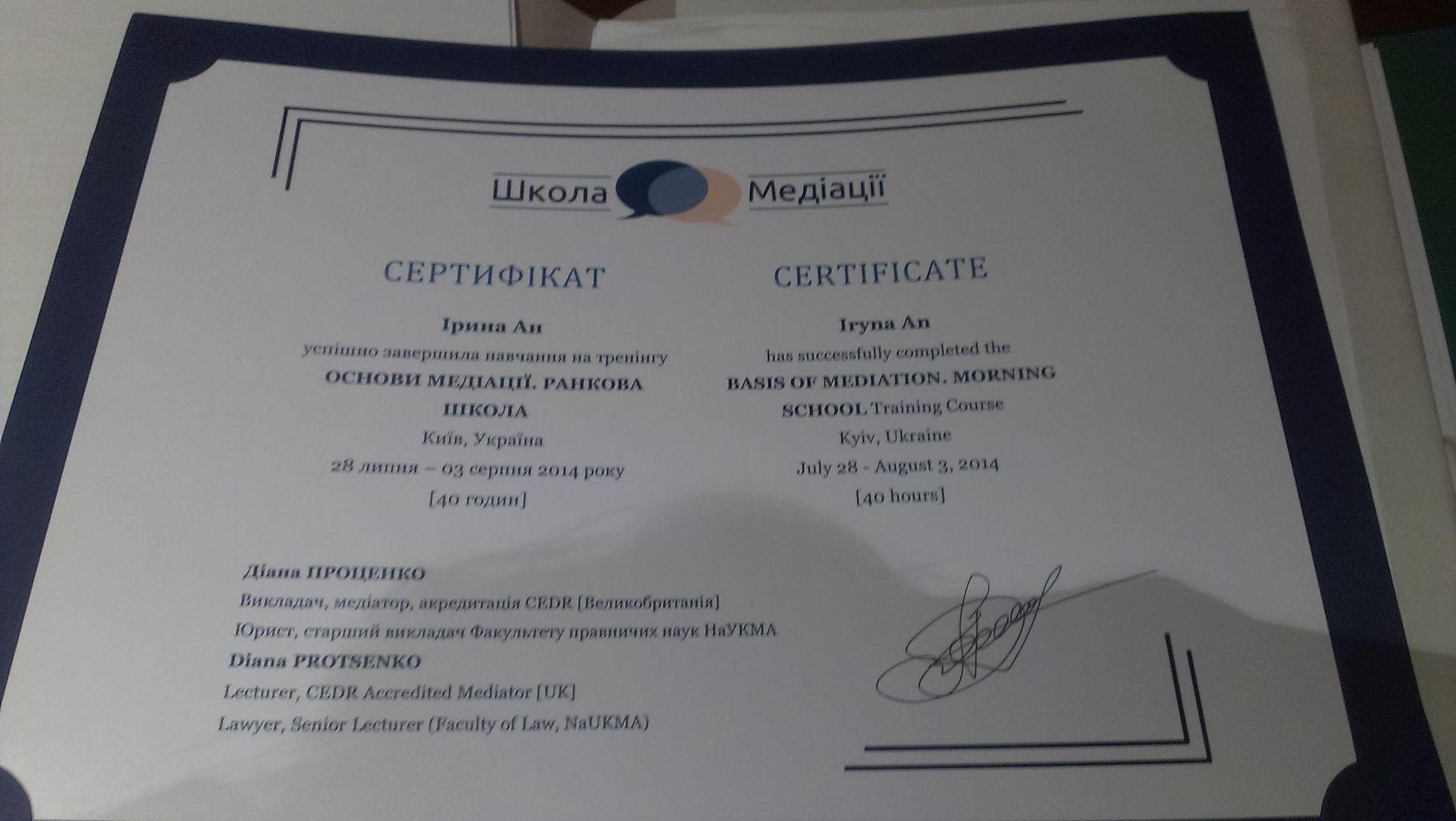 Розповсюдження інституту медіації, обмін досвідом, поглиблення знань та навичок. Пропоную свою енергійність, знання двох іноземних мов та бажання розвивати інститут медіації.