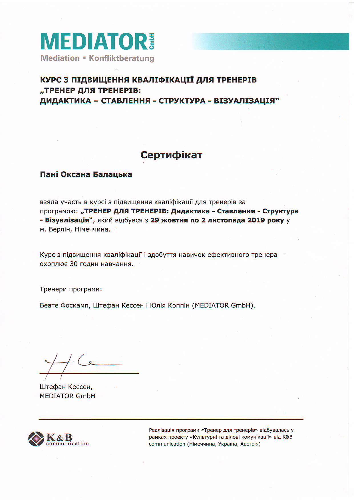 Курс з підвищення кваліфікації для тренерів "Тренер для тренерів: дидактика - ставлення - структура - візуалізація"