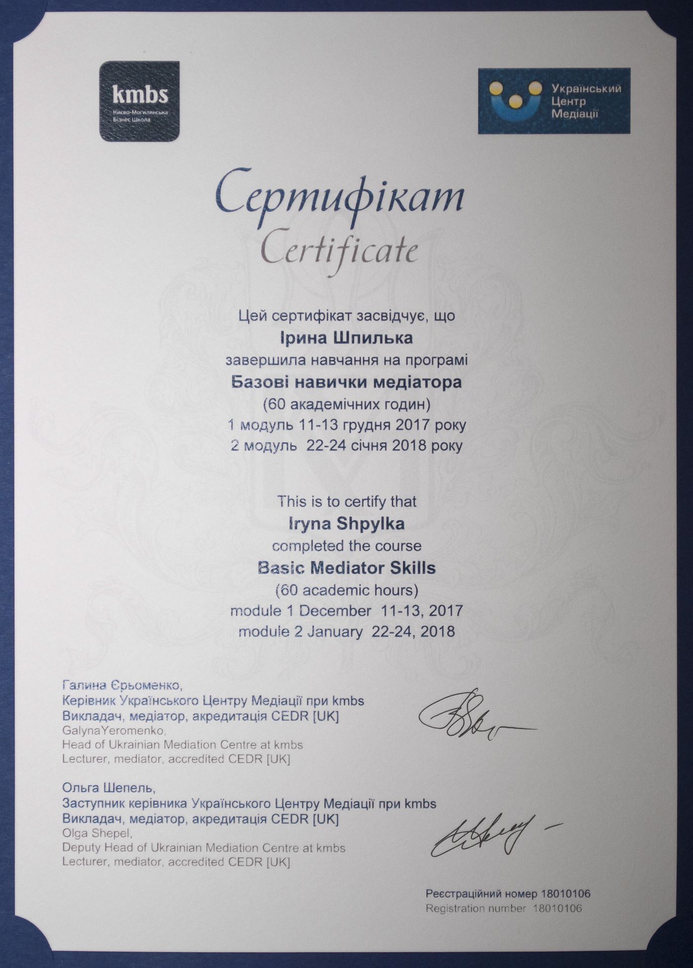 Вступ до членів НАМУ зумовлений отриманням можливості практичної діяльності медіатора, бажанням розвитку та популяризації медіації в м. Полтаві.
