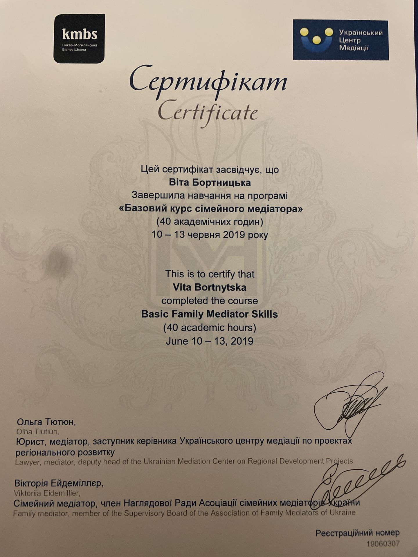 За освітою юрист, суддя у відставці. З огляну на досвід роботи в суді, вважаю що медіація найбільш екологічний спосіб вирішення спорів. Рішення вступити до членів НАМУ: - взаємодія з колегами; - підвищення кваліфікації; Можу запропонувати свій досвід судді для популяризації медіації.
