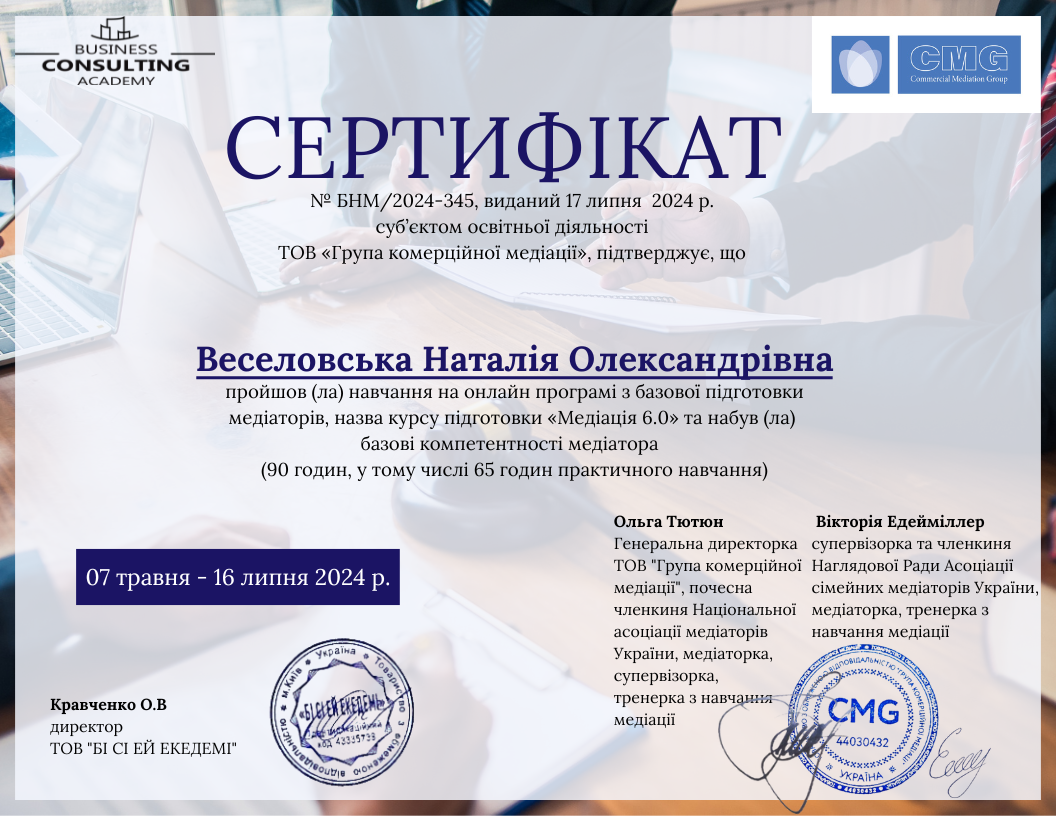 Я, як викладач конфліктології та медіації, хочу бути корисною розвитку української медіації, а також хочу допомогти людям професіййно вирішити конфлікти