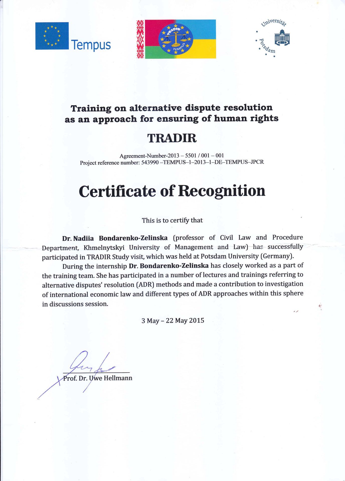 543990-TEMPUS-1-2013-1-DE-TEMPUS-JPCR (TRADIR) «Training on alternative disputes resolution as an approach for ensuring of human rights»